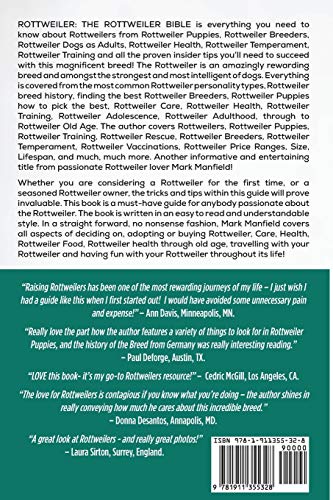 Specification: Rottweiler: The Rottweiler Bible: Rottweiler Complete Guide Includes: Rottweiler Puppies, Rottweiler Adults, Rottweiler Care, Rottweiler Breeders, Rottweiler Health, Training & More! Paperback – March 21, 2017